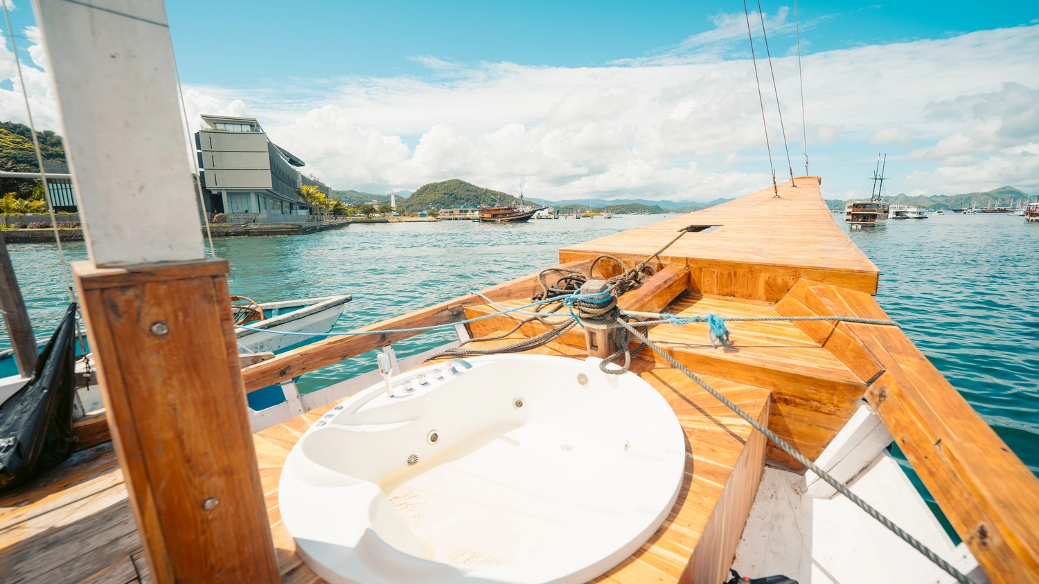 Kapal Phinisi Labuan Bajo Deluxe 2 menawarkan pengalaman liburan mewah di atas kapal dengan fasilitas lengkap, termasuk tujuh kabin ber-AC, enam kamar mandi pribadi, serta hiburan seperti TV, karaoke, dan sistem suara Bluetooth. Kapal ini berkapasitas hingga 18 orang, dengan pilihan kamar Master Ocean yang dilengkapi balkon pribadi, Signature Ocean, dan Superior Cabin. Selama perjalanan, tamu dapat menikmati aktivitas seru seperti snorkeling di Pantai Pink, trekking di Pulau Padar dan Komodo, serta bersantai di sundeck luas sambil menikmati pemandangan laut.