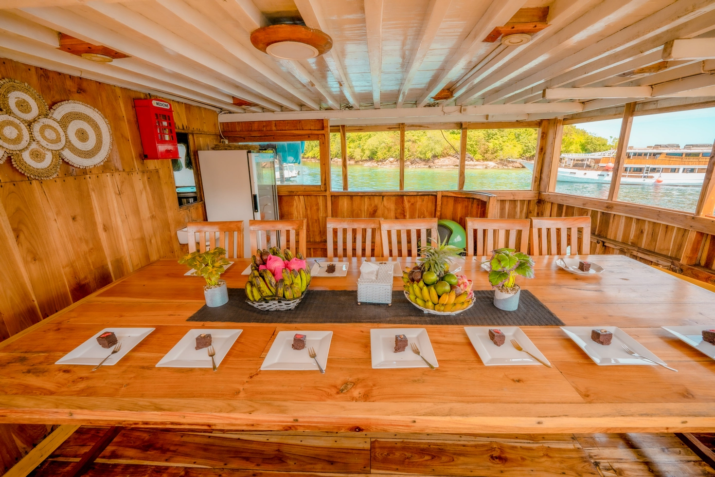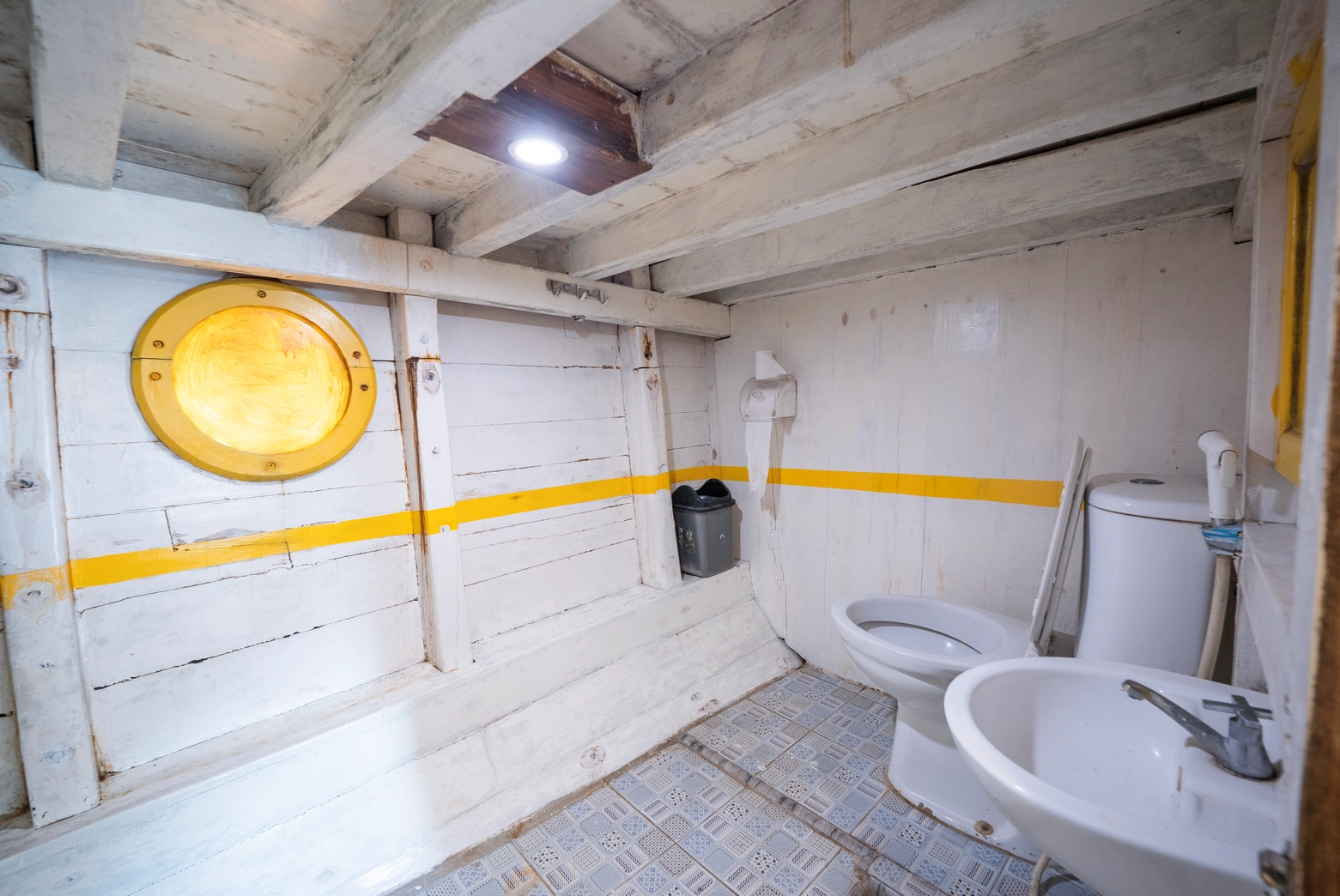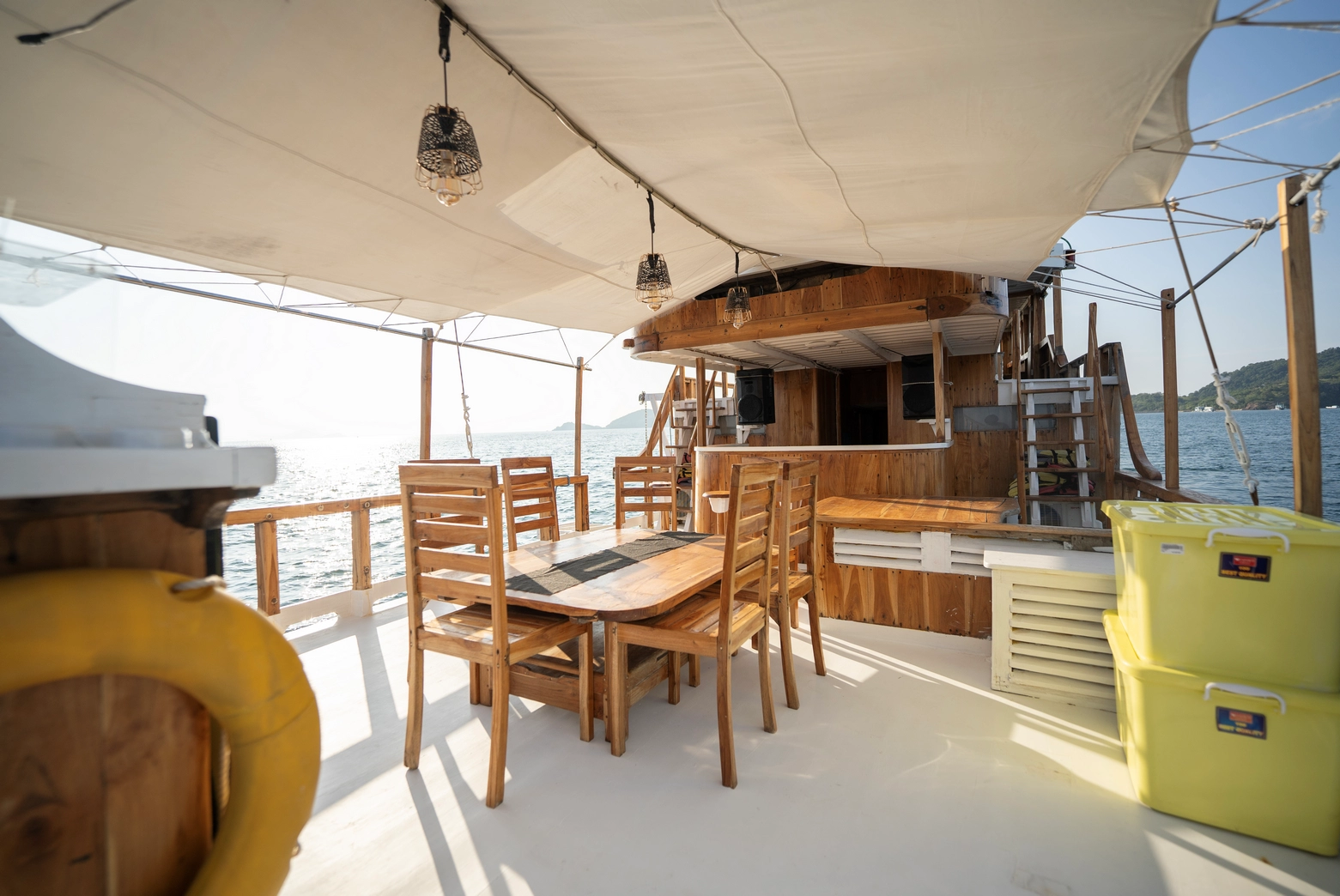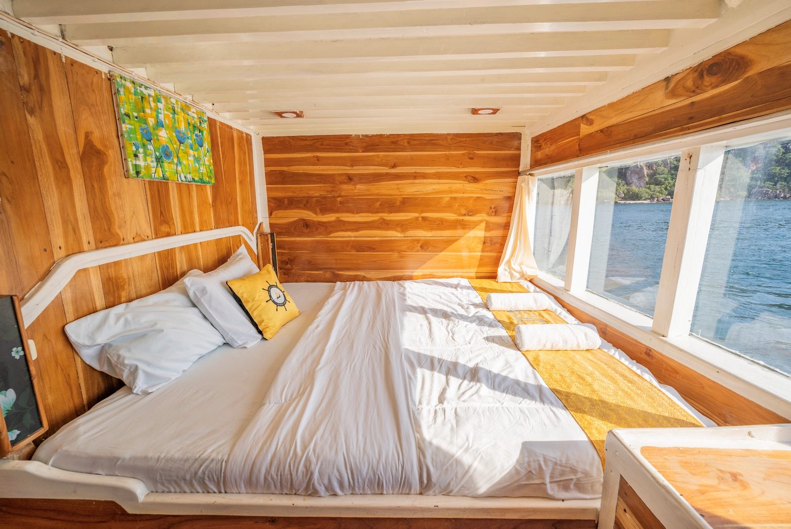 Setiap dari 7 kabin dilengkapi dengan AC dan 7 kamar mandi pribadi, dengan kapasitas total untuk 14 orang.