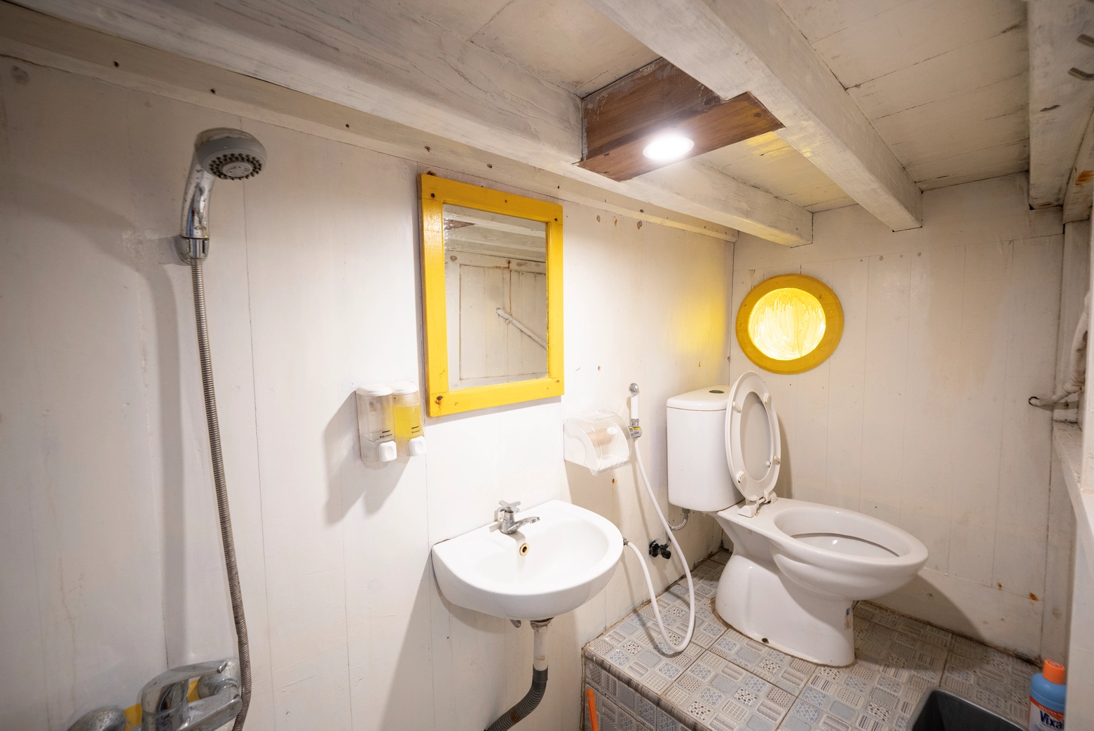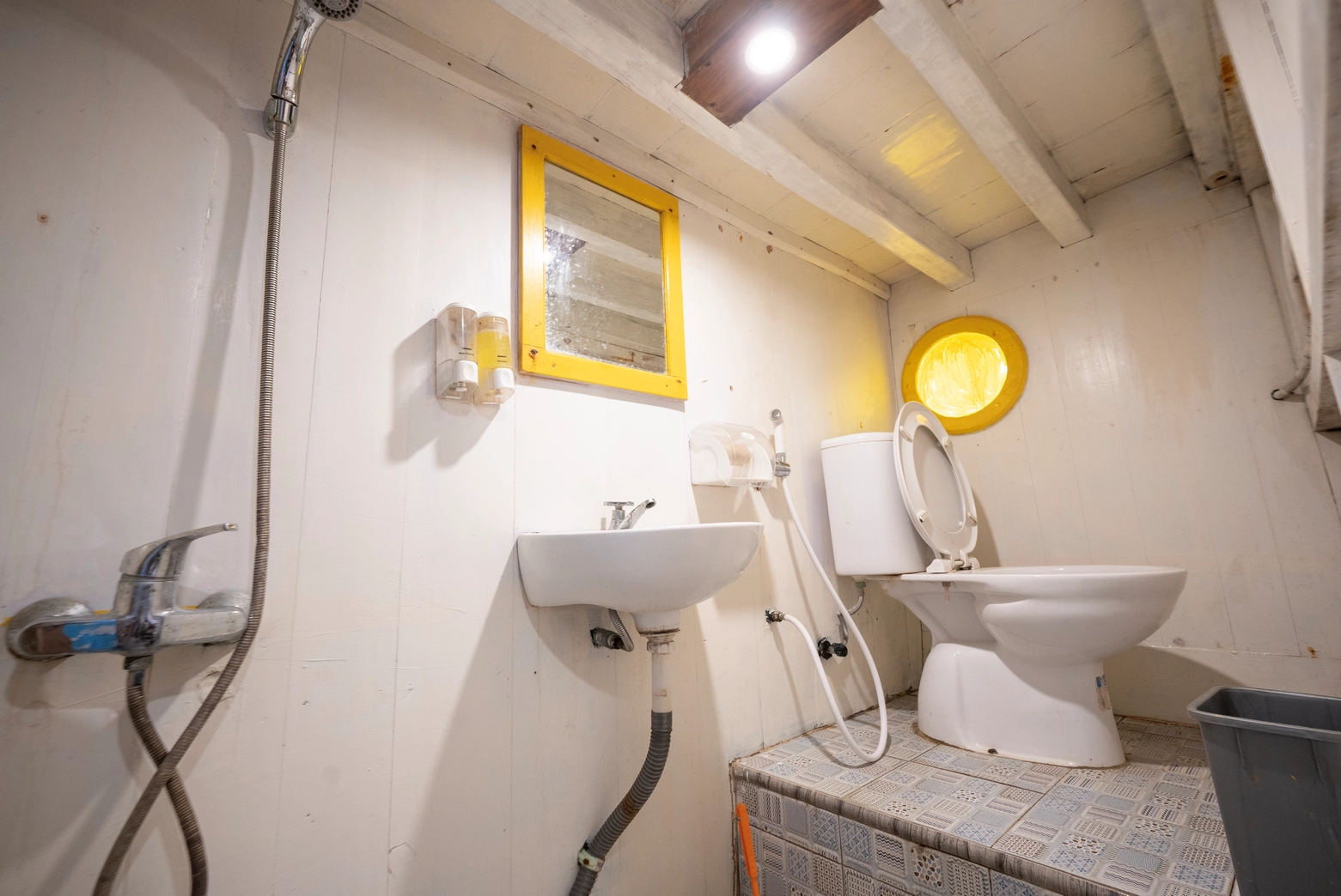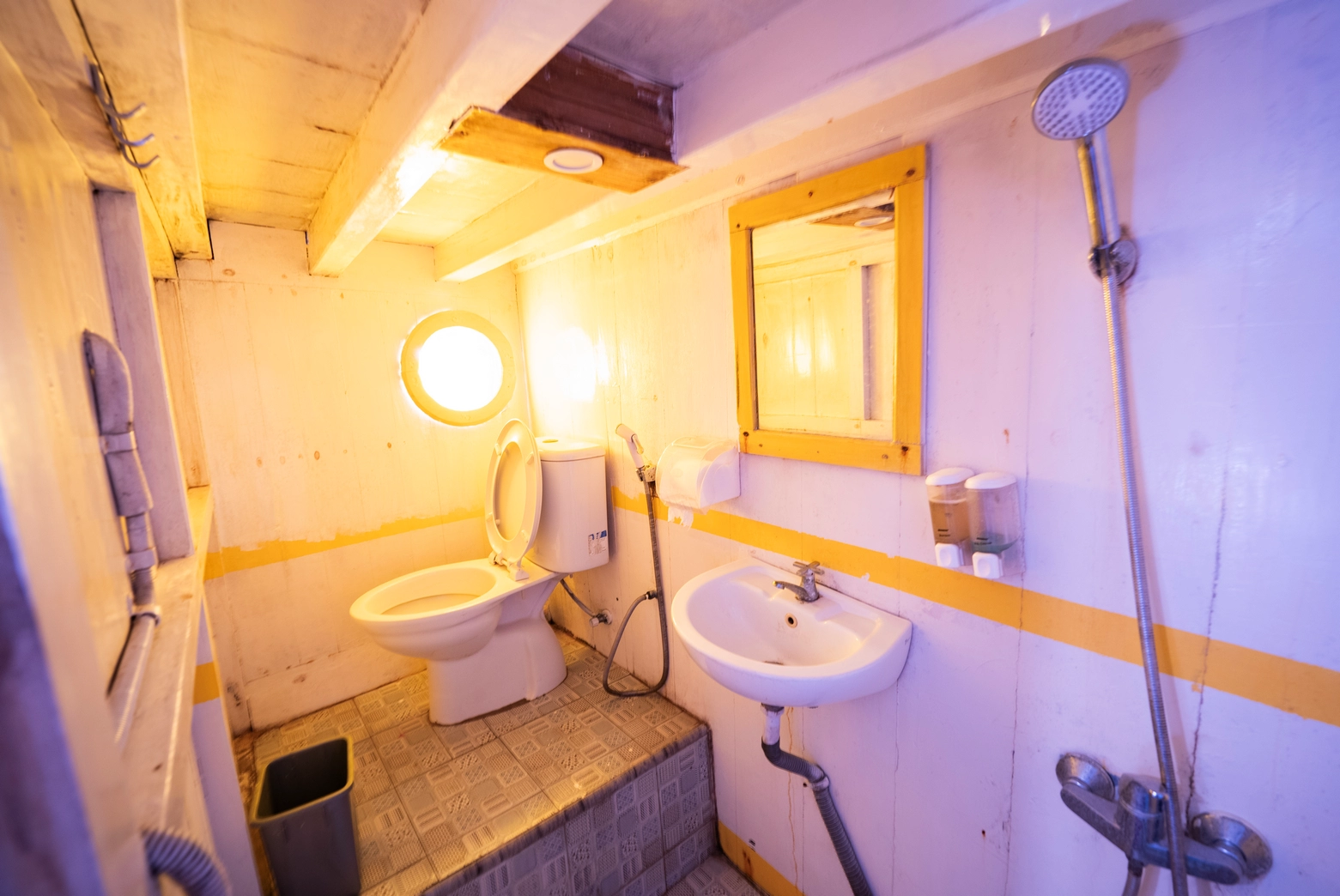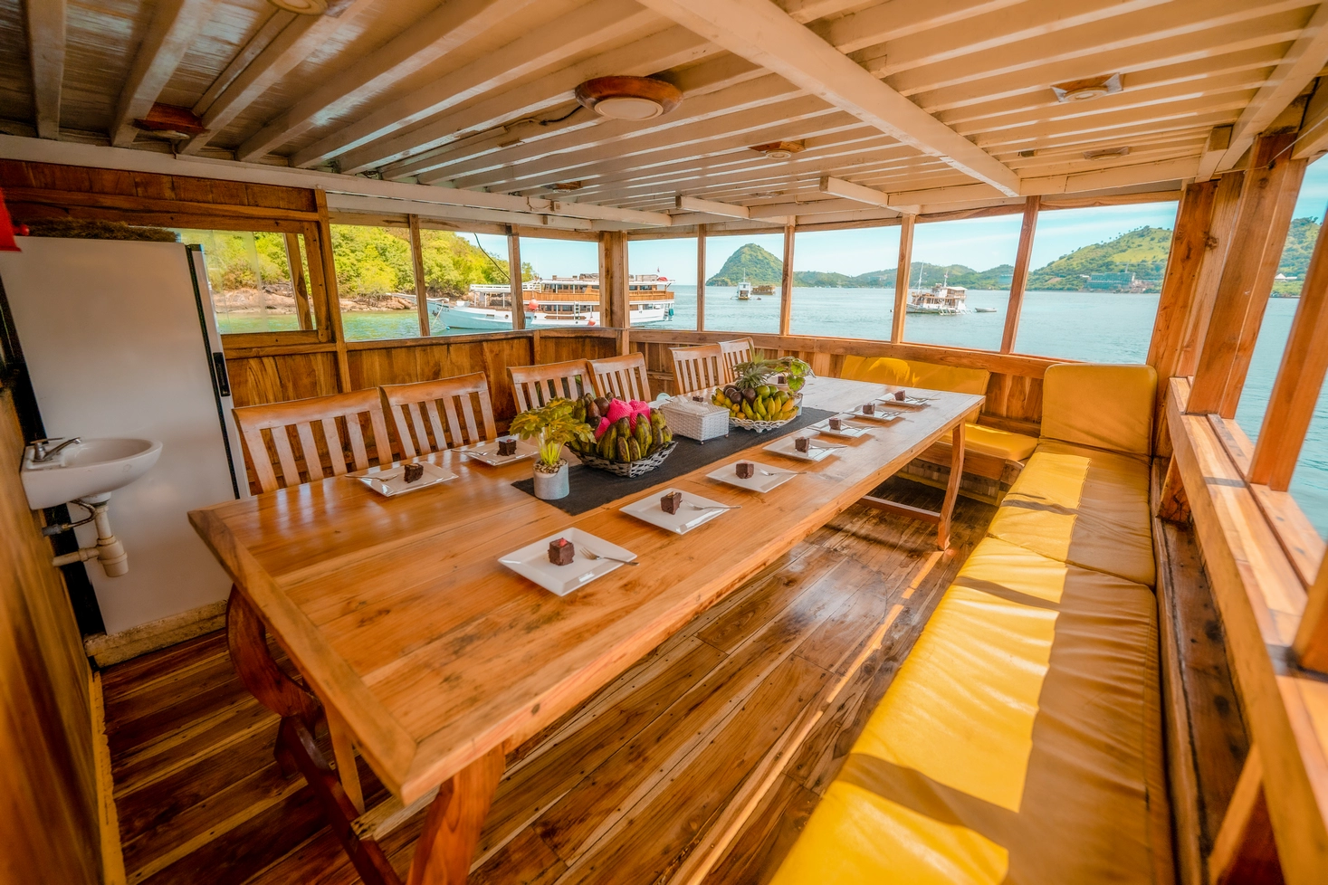 Setiap dari 7 kabin dilengkapi dengan AC dan 7 kamar mandi pribadi, dengan kapasitas total untuk 14 orang.