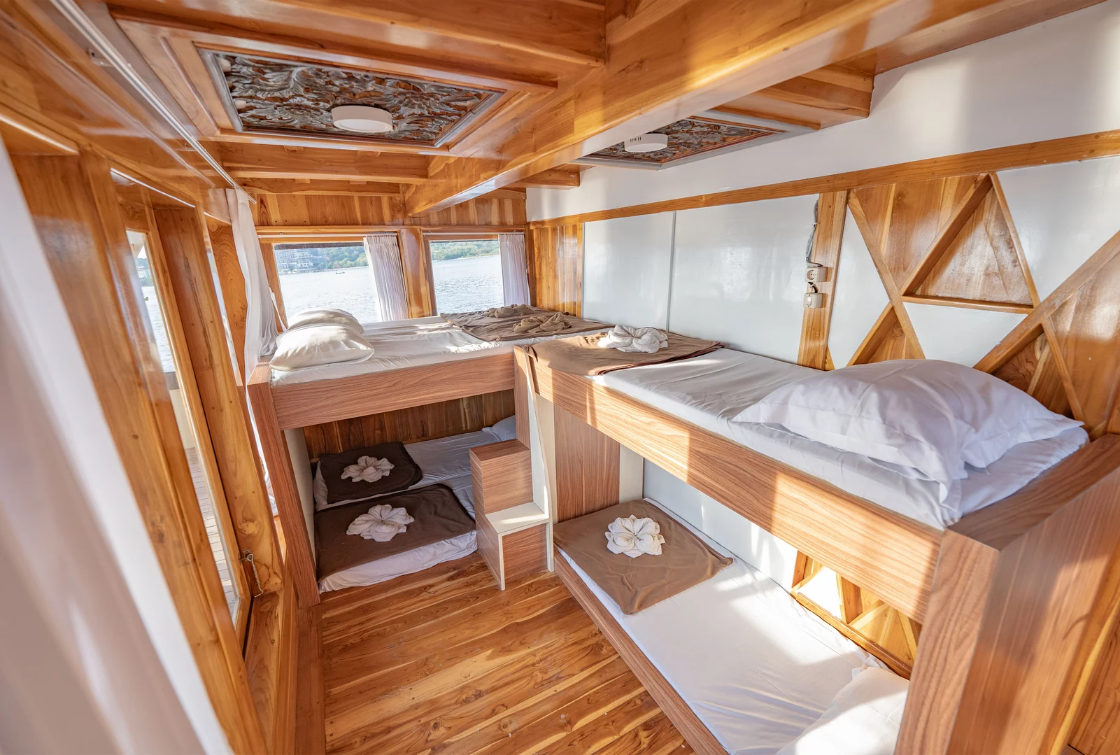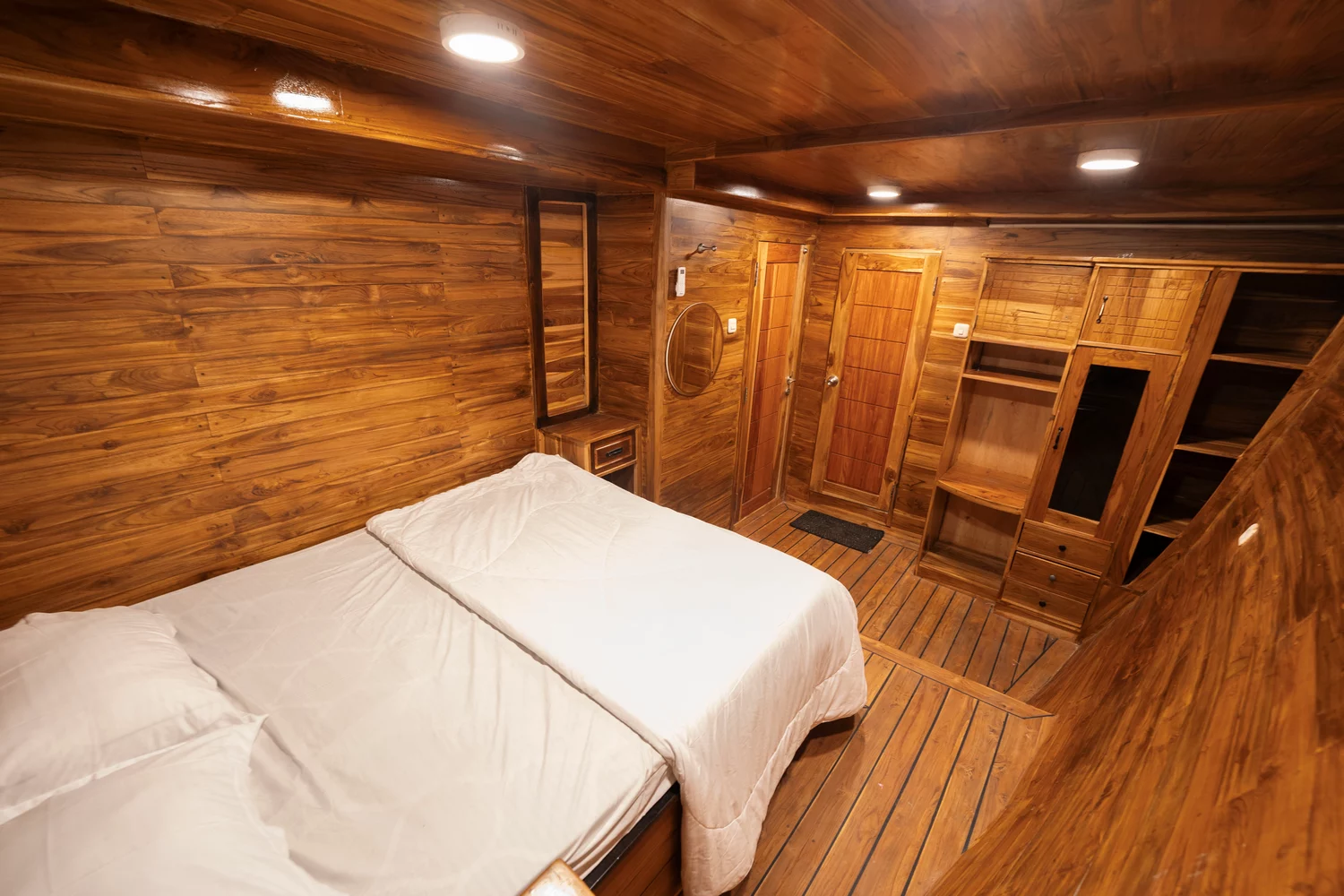 Masing-masing dari 12 kabin dilengkapi dengan AC dan kamar mandi pribadi. Dengan kapsitas 22-28 orang.