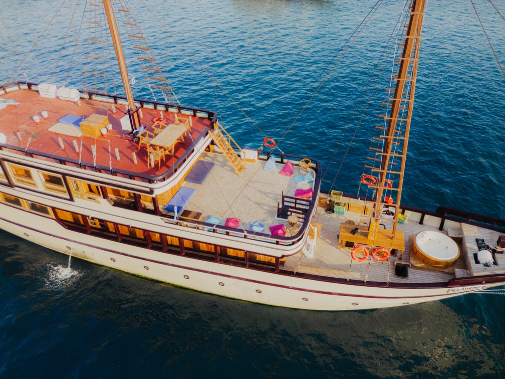 Kapal Phinisi Labuan Bajo Luxury 1 tidak hanya menawarkan petualangan di atas air, tetapi juga menghadirkan layanan kelas atas, termasuk makanan lengkap dan kru profesional yang siap melayani selama perjalanan. Itinerary yang fleksibel memungkinkan Anda untuk menikmati spot-spot terbaik di Labuan Bajo seperti Pulau Komodo, Pulau Padar, dan Pantai Pink. Selain itu, kapal ini juga menyediakan fasilitas snorkeling dan diving, sehingga Anda bisa menjelajahi keindahan bawah laut yang menakjubkan. Dengan Luxury 1, Anda dapat merasakan sensasi liburan mewah di atas kapal tradisional Phinisi sambil menikmati panorama indah dan eksotis dari Labuan Bajo.