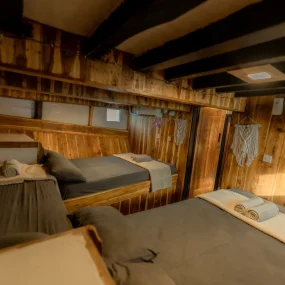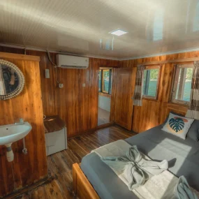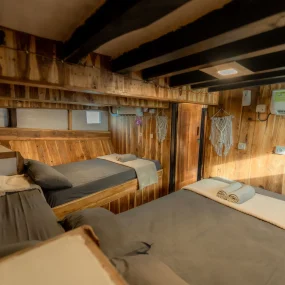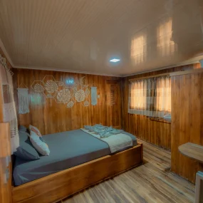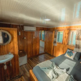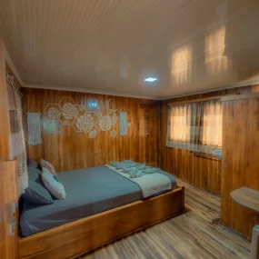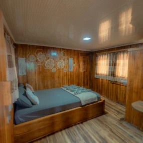• Kabin 6: Queen Bed + Extra Bed (Untuk 2-3 Orang, kamar mandi pribadi)