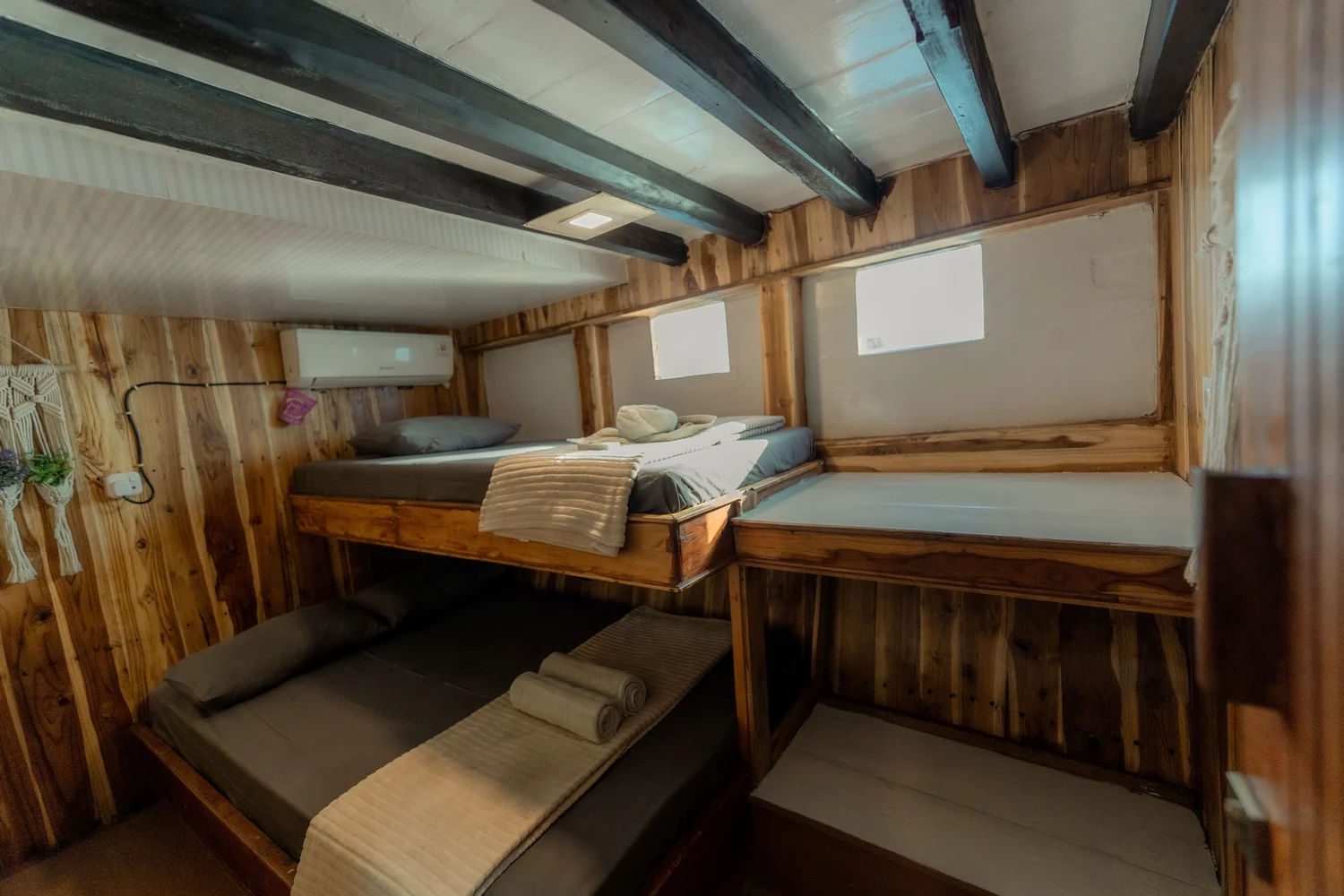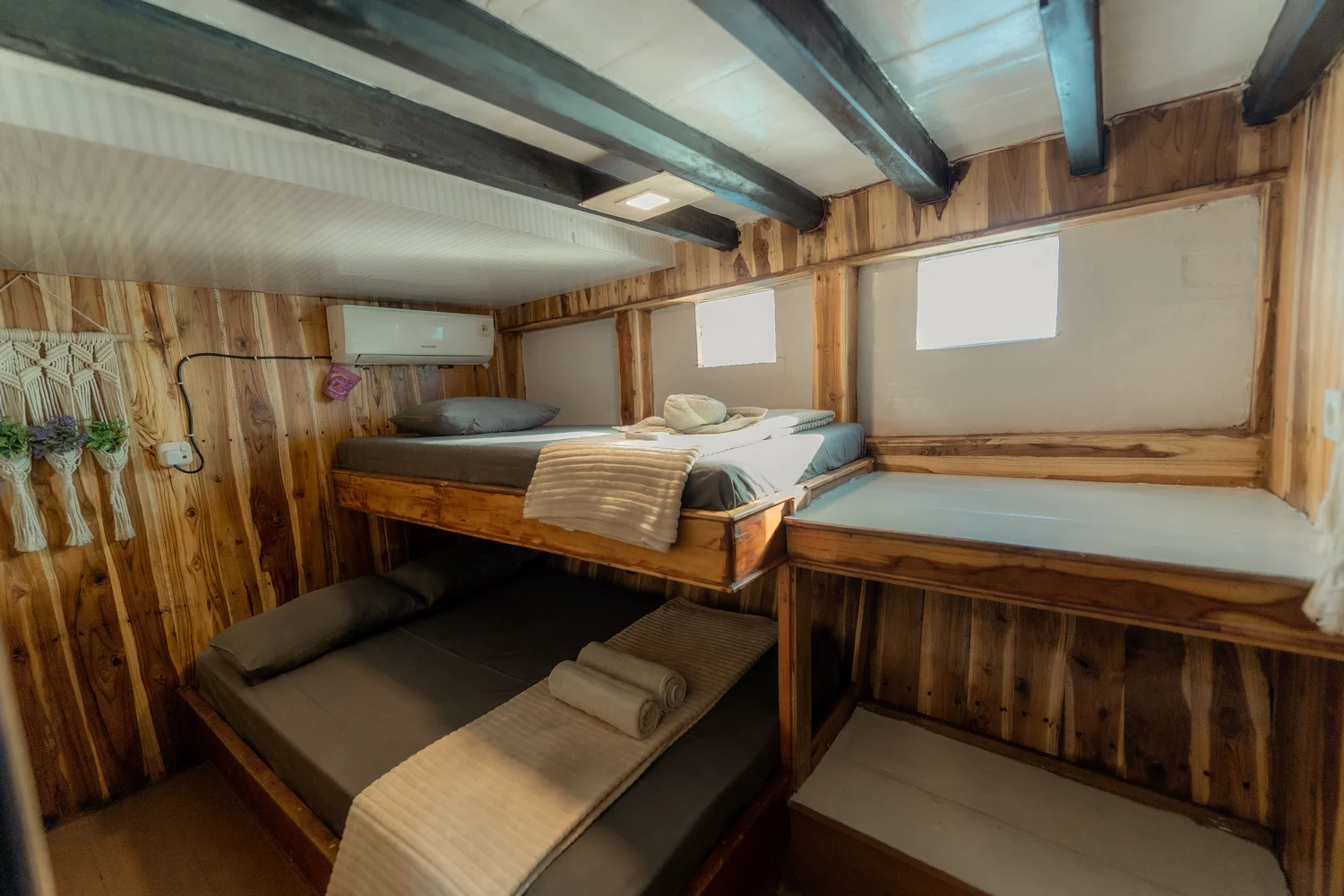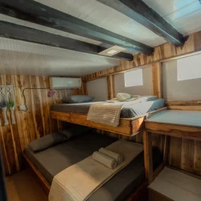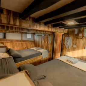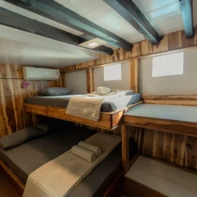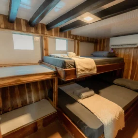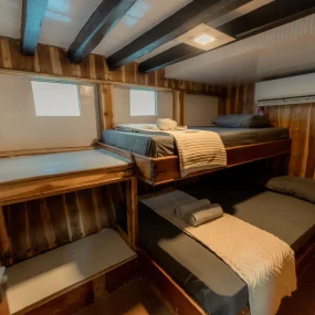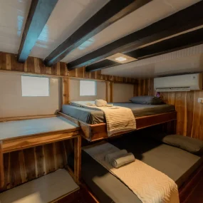 • Kabin 3: 2x Queen Bed + Single Bed (Untuk 5 Orang)