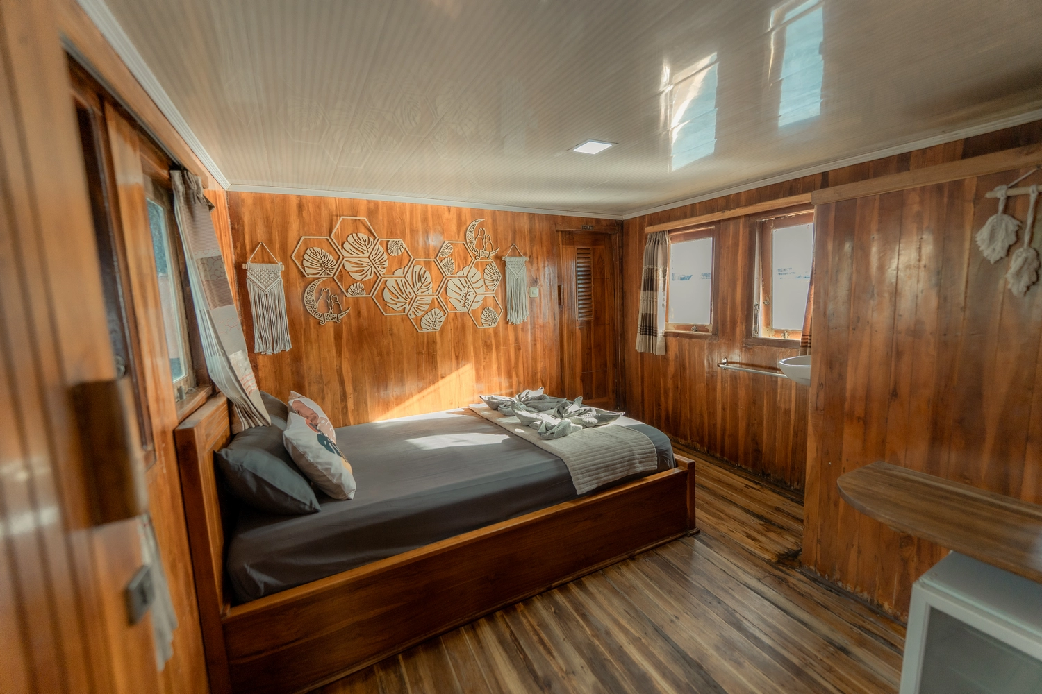 • Kabin 5: Queen Bed (Untuk 2 Orang, kamar mandi pribadi)