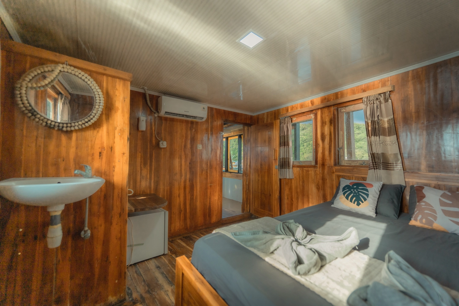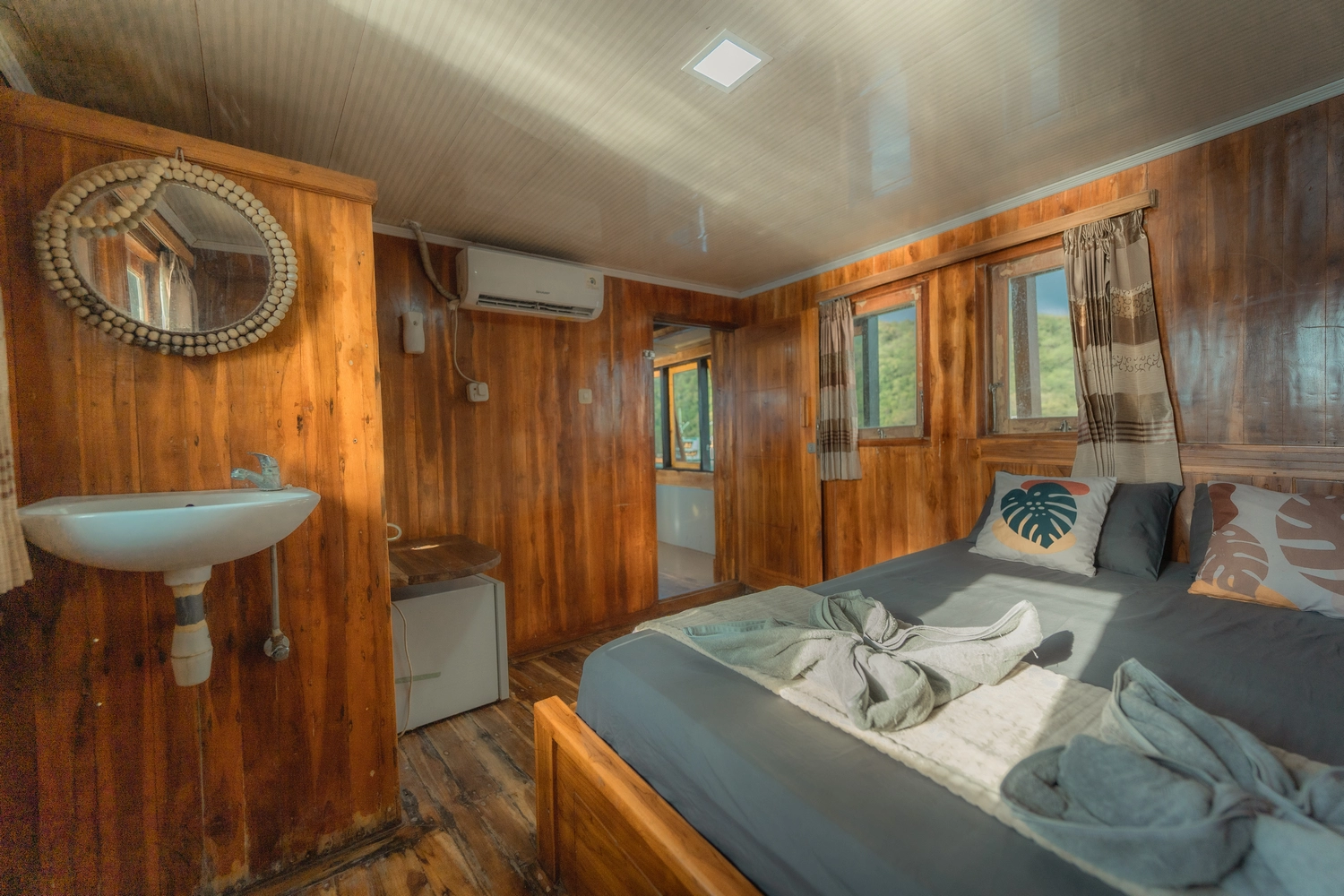 • Kabin 2: Queen Bed + Single Bed (Untuk 2-3 Orang)